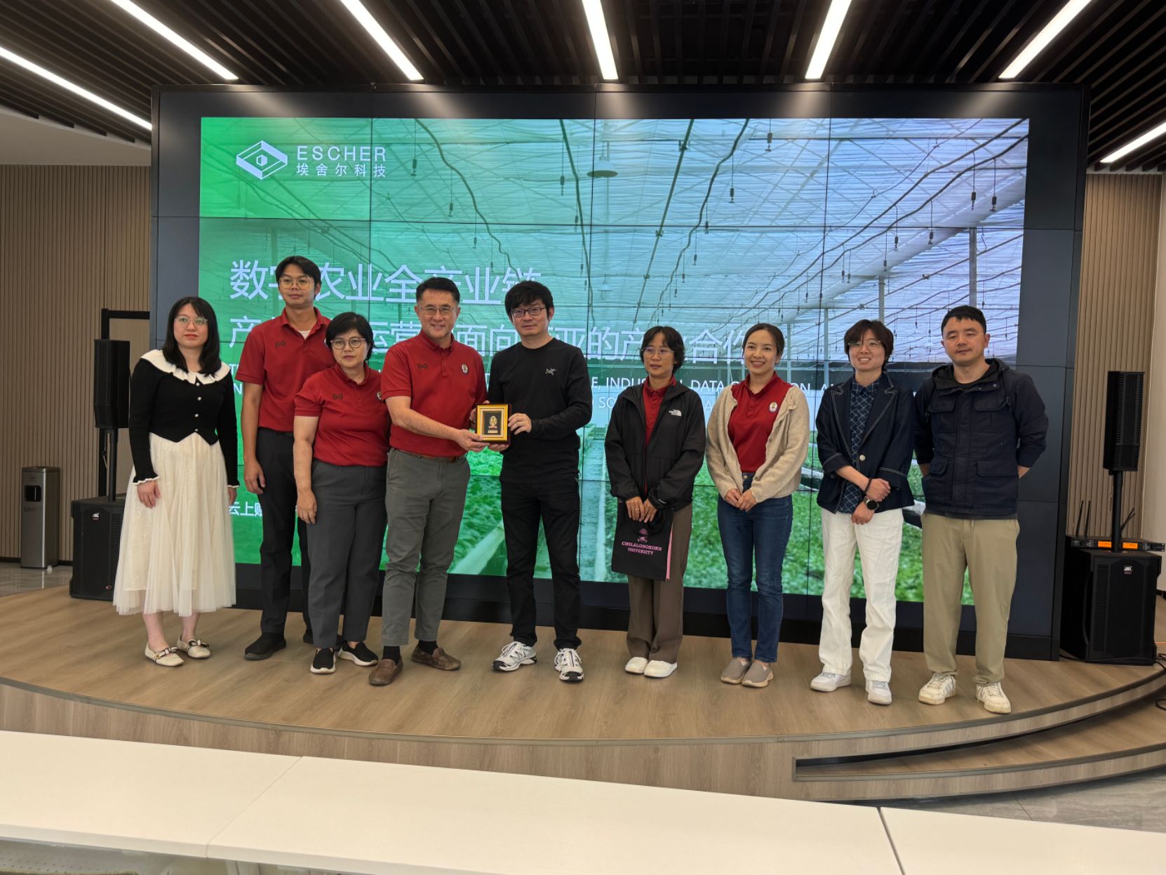 在董慧荣老师的带领下,朱拉隆功大学一行人参观了独播库合作企业埃舍尔科技有限公司,进行了数字农业全产业链交流学习并且现场带领大家体验了AI人像采集。埃舍尔科技有限公司总经理王轶等向大家详细展示了企业在智慧农业方向的发展现状与发展目标、最新科技产品与成功典型案例,企业核心竞争力等。