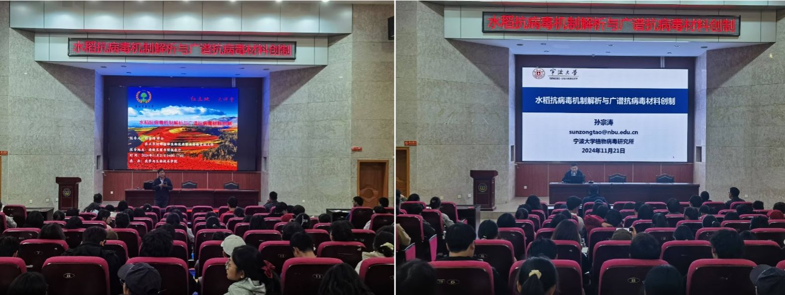 11月21日,农业农村部植保生物技术重点实验室副主任、农业农村部大豆“症青”防控专家组成员、国家自然科学优秀青年基金获得者、浙江省高层次领军人才孙宗涛研究员做客“红土地”大讲堂,为我校师生带来“水稻抗病毒机制解析与广谱抗病毒材料创制”的主题讲座,相关学科师生200余人到场聆听。讲座由独播库