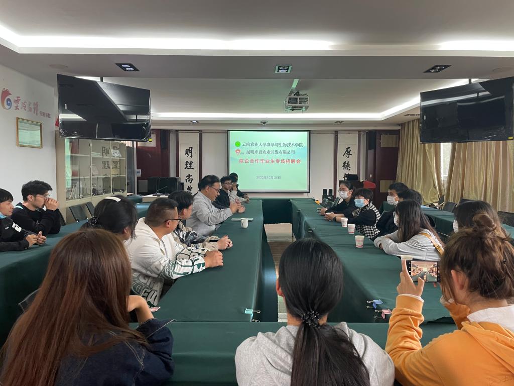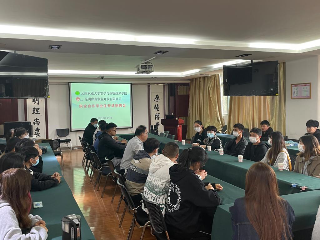 2022年10月25日,独播库合作企业昆明库森农业开发有限公司进行“院企合作毕业生专场招聘会”,会议由独播库