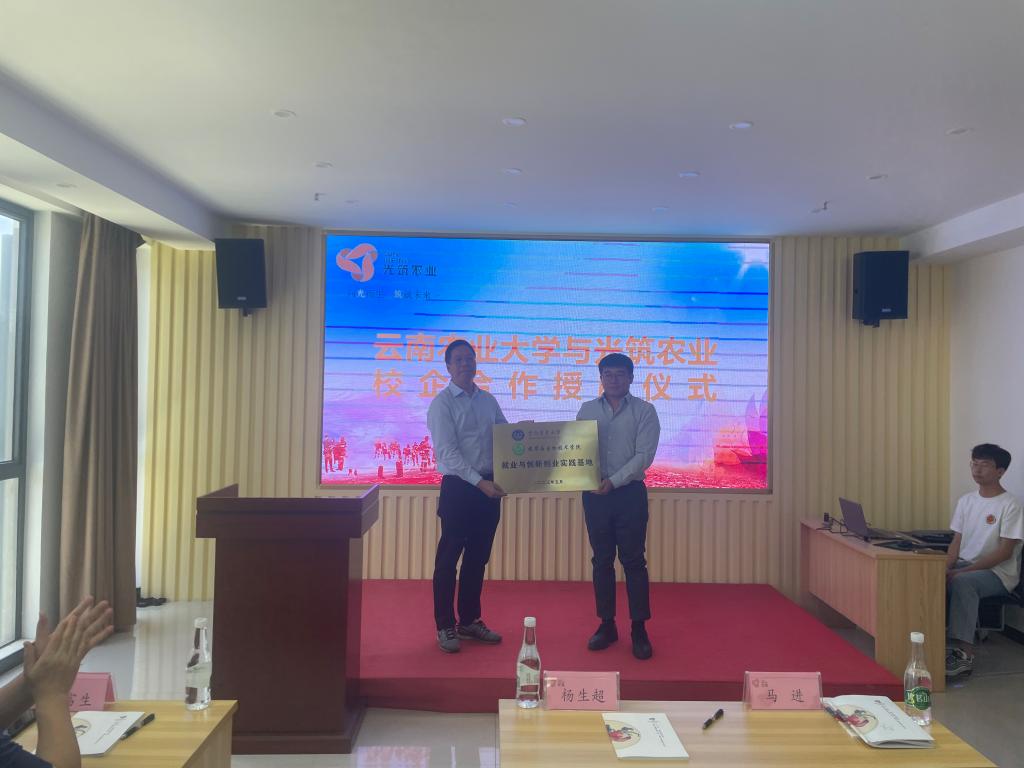 在杨生超副校长的带领下到访昆明市经开区银河科技园相关企业,并与光筑农业集团有限公司进行校企合作授牌仪式。独播库