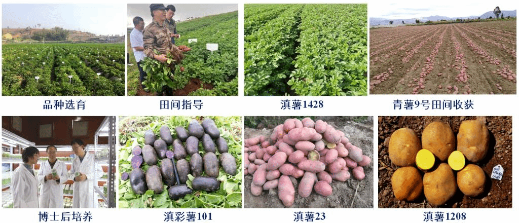 秉持“育小薯济苍生,栽大木柱长天”的初心使命,致力于云南高原薯业发展,形成学缘结构合理,教学特色鲜明、学术造诣高的专兼职研究队伍,团队成员11人,教授4人,博士8人。先后承担农业农村部、科技部、国家基金和云南省科研项目等20余项,重点开展薯类作物种质资源评价与种质创新、薯类作物生理生态与高效栽培、薯类作物特殊营养组分与相关基因挖掘等科研工作。获“云南省科技进步特等奖”、“农牧渔业丰收奖贡献奖”、“云南省技术发明二等奖”等省部级科研奖励6项。在国内外学术刊物上发表论文300余篇。主编或参编教材、专著12部,授权国家专利15件。选育并通过国家登记、省级审定(鉴定)薯类作物新品种14个,其中引进并审定的马铃薯品种‘青薯9号’占云南马铃薯全年播种面积的20%以上,为云南第一大主栽品种,每年为薯农增收超10亿元;自主选育的‘滇薯23’、‘滇薯47’成为2020年云南省马铃薯主导品种。