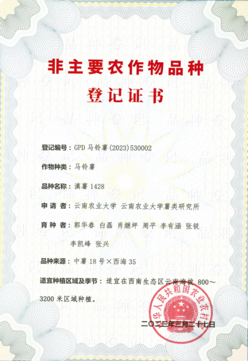 ’两个马铃薯新品种获国家农作物新品种登记;‘滇薯