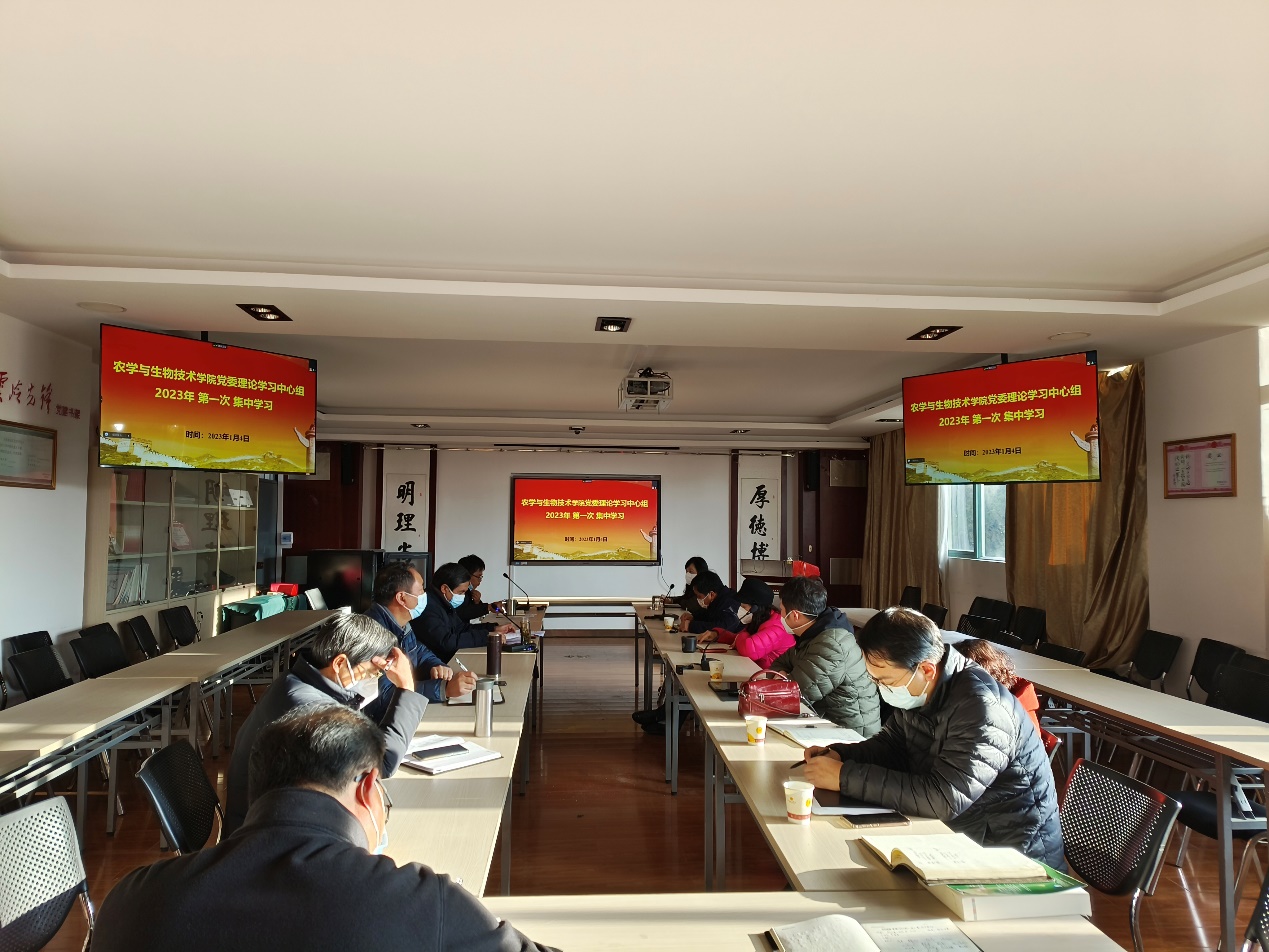 党委理论学习中心组(扩大)2023年第一次集中学习在院会议室举行,会议由院党委书记李富生主持并做主题发言,采取线下、线上(腾讯会议)结合的方式开展,独播库