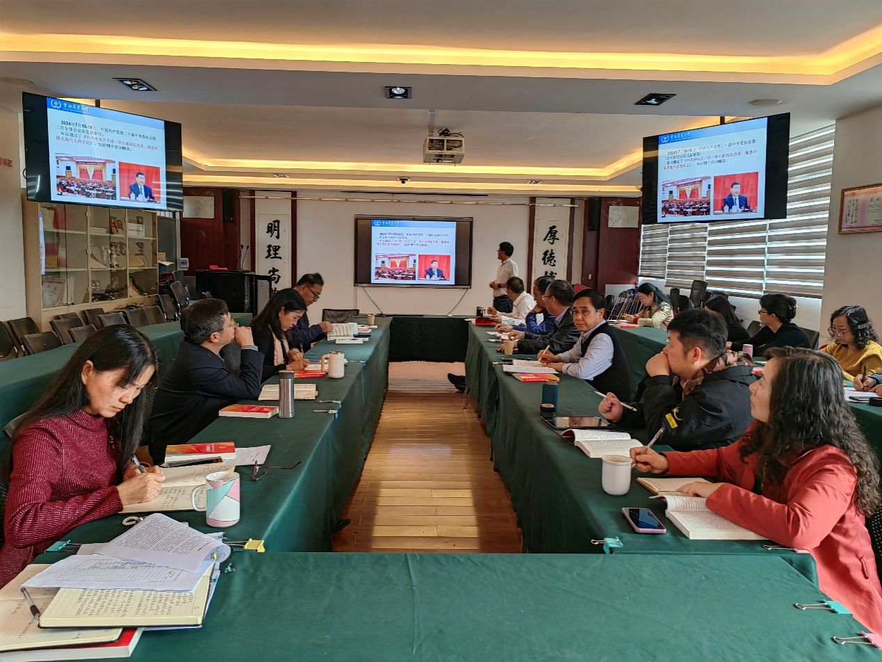 最后,校党委副书记黄鹤平作了指导讲话,并提出了两点要求:一是要深入学习贯彻党的二十届三中全会精神和全国教育大会精神,加强铸牢中华民族共同体意识,做到学习有质量,转化有思想,工作有思路;二是认清形势,找准坐标,结合实际,持续深入推进“院办校”试点改革等重点工作,为学校、独播库