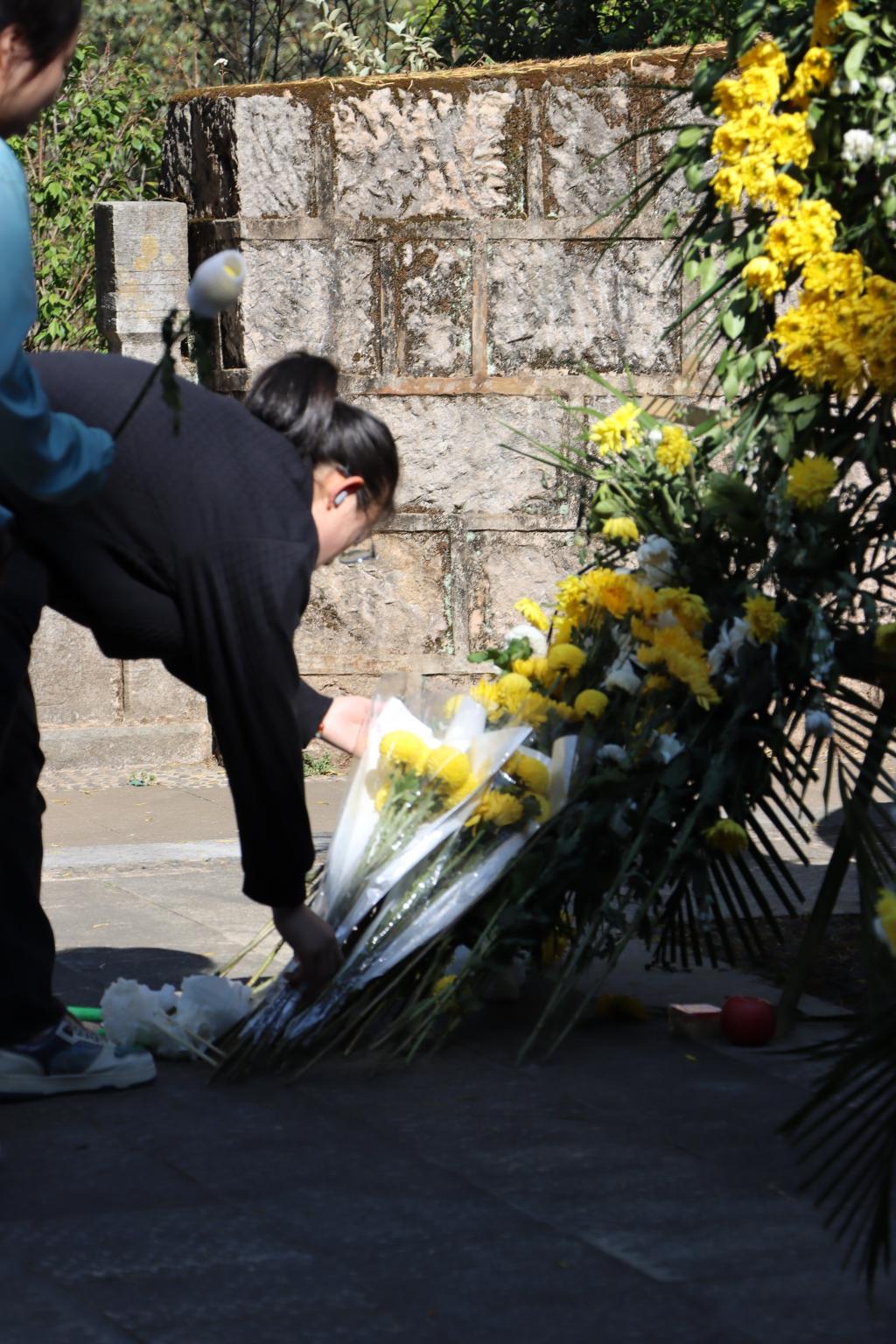 22植检共200余同学手捧鲜花,怀着对烈士的敬仰之情来到到黑龙潭公园烈士陵园。上午十时,哀悼活动正式开始。主持人首先为大家讲述了革命烈士的英勇事迹,随着这段感人肺腑、荡气回肠的历史在大家的眼前重现,同学们有感而发。四个班的学生代表发表了真挚感言,人民英雄不朽的精神会被永远铭记在人民心中,他们的英勇事迹会被永远传颂在祖国大地之上!随后,同学们庄严地将自己手中一支支洁白的鲜花轻轻的放到烈士陵墓前并一一鞠躬。他们用自己的方式,怀着最赤诚的一颗心,来告慰那些远在天涯,却又活在人民心中的英烈!最后,全体人员向烈士默哀三分钟,向革命先烈表达深沉的哀思和无尽的怀念。