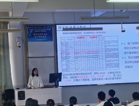 讲座邀请了在全国硕士研究生招生考试中取得优异成绩的两位优秀学生代表担任主讲嘉宾。他们结合自身备考经历,从不同角度倾囊相授,分享了宝贵的心得与实战经验。他们围绕院校与专业选择、公共课(政治、英语)与专业课的复习策略、高效的时间管理与心态调整、复试准备与面试技巧等关键议题进行了深入细致的讲解。